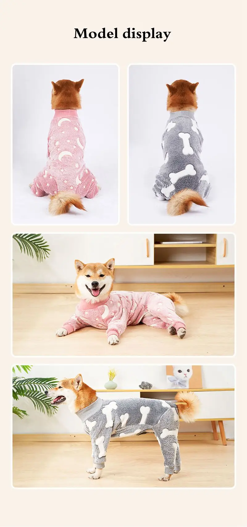 Dog Pajamas Four Legs Pet Fleece Jumpsuit Winter Warm Dog Jumpsuit Cute Pet Clothes Onesies for Medium Large Dogs Labrador Coat